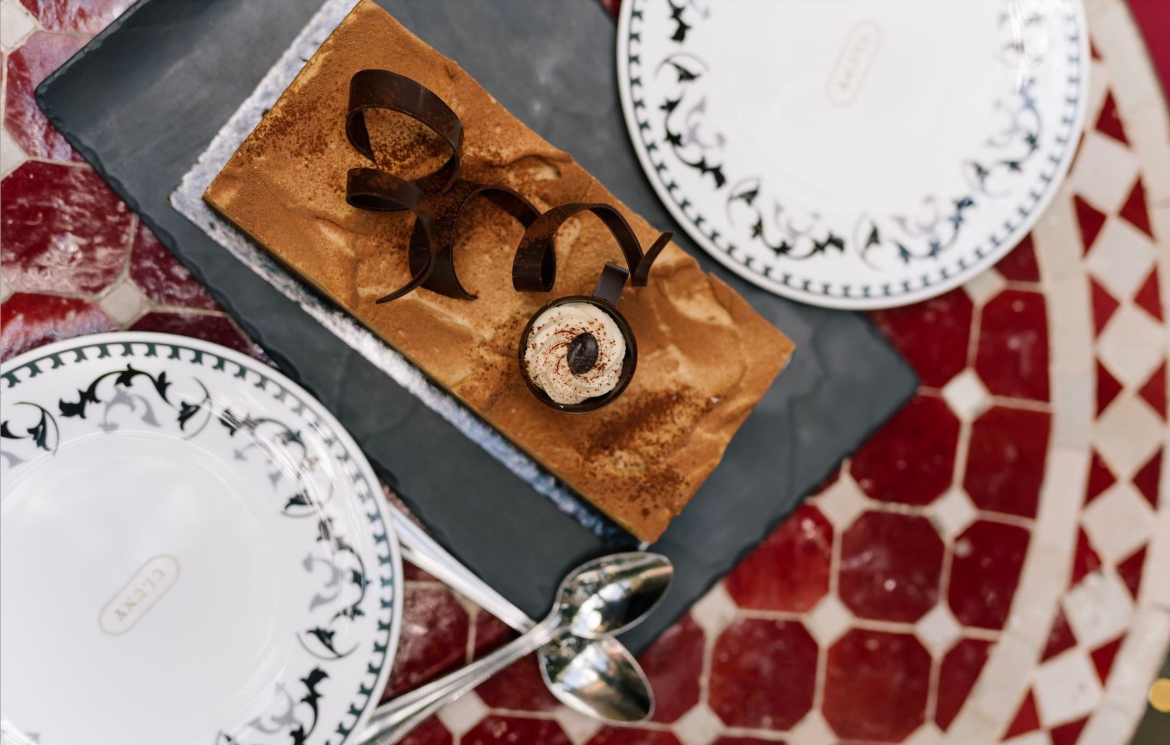chocolate and caramelized almond nibs, dark chocolate chantilly, chocolate sable